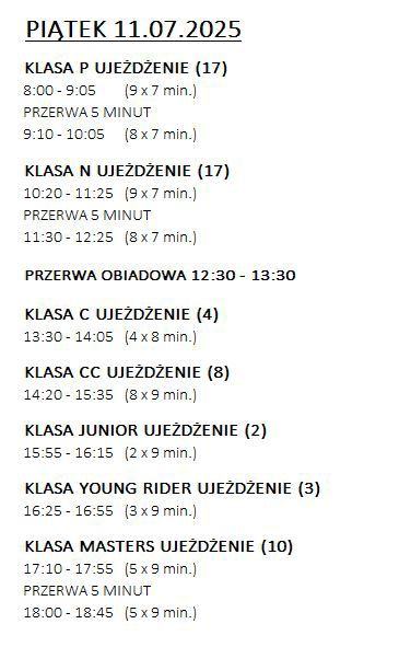 • Konkurs Ujeżdżenia klasy P/N/C/CC/Junior/Young Rider/Masters