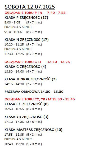 • Konkurs Zręczności klasy P/N/C/CC/Junior/Young Rider/Masters