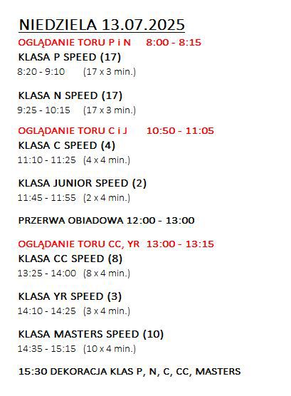 • Konkurs Szybkości klasy P/N/C/CC/Junior/Young Rider/Masters