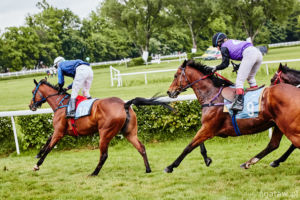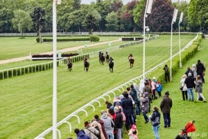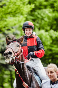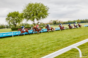 Trzecia gonitwa, to debiutujące trzyletnie konie pełnej krwi angielskiej – od początku w czołówce galopowały faworyzowane Jam Vladyslava pod Natalią Hendzel i Trybunał, którego dosiadał gościnnie młody szwedzki jeździec Andreas Tapia Dalbark. Na prostej klacz uzyskała przewagę nad rywalem i niezagrożona minęła celownik jako pierwsza, trzeci finiszował Mlody Pan (Petro Nakoniechnyi). Trenerem zwyciężczyni jest Wojciech Chaboski.