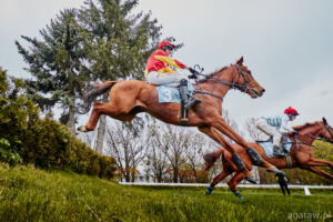 Drugą gonitwę z płotami, tym razem dla koni już w tej specjalności doświadczonych, wygrał Tech Jury dosiadany przez Jana Faltejska. W dystansie galopował w środku stawki, którą prowadziły Meisho Kongoh (Josef Bartos) i Top Tango (Dominik Pastuszka). Na przeciwległej prostej na front wyszła Plantea (Oleksandr Ryzhak), w ślad za nią ruszył Royal Gino (Lukas Matusky). Na finiszowej prostej do tej dwójki zaczął zbliżać się Tech Jury, Royal Gino minął słabnącą Planteę, a po chwili sam został wyprzedzony przez Tech Jury. Trenerem zwycięskiego konia jest Pavel Tuma, właścicielem – Charvat Group s.r.o.