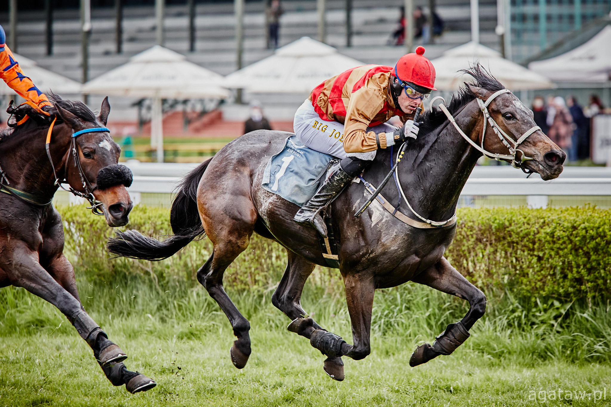 Pierwszą gonitwę dnia, z płotami dla debiutantów, wygrała nieoczekiwanie Biddy Brady dosiadana przez Pavla Peprnę. W początkowej fazie wyścigu tempo dyktowała Touch Of Australia (Pavel Slozil), potem zmieniona przez Urugwajkę (Oleksadr Ryzhak). Przed wejściem w ostatni zakręt na czoło stawki wysunął się Valley Pride (Niklas Loven), dołączyły do niego Doc Davis (Jan Kratochvil) i Biddy Brady. Na finiszowej prostej klacz oderwała się od rywali i z dużą przewagą minęła pierwsza celownik. Z walczącej za nią pary nieznacznie, o krótki łeb, lepszy był Valley Pride. Trenerem zwycięskiej klaczy jest Tomasz Pastuszka, właścicielem – UAB Zirgo startas.